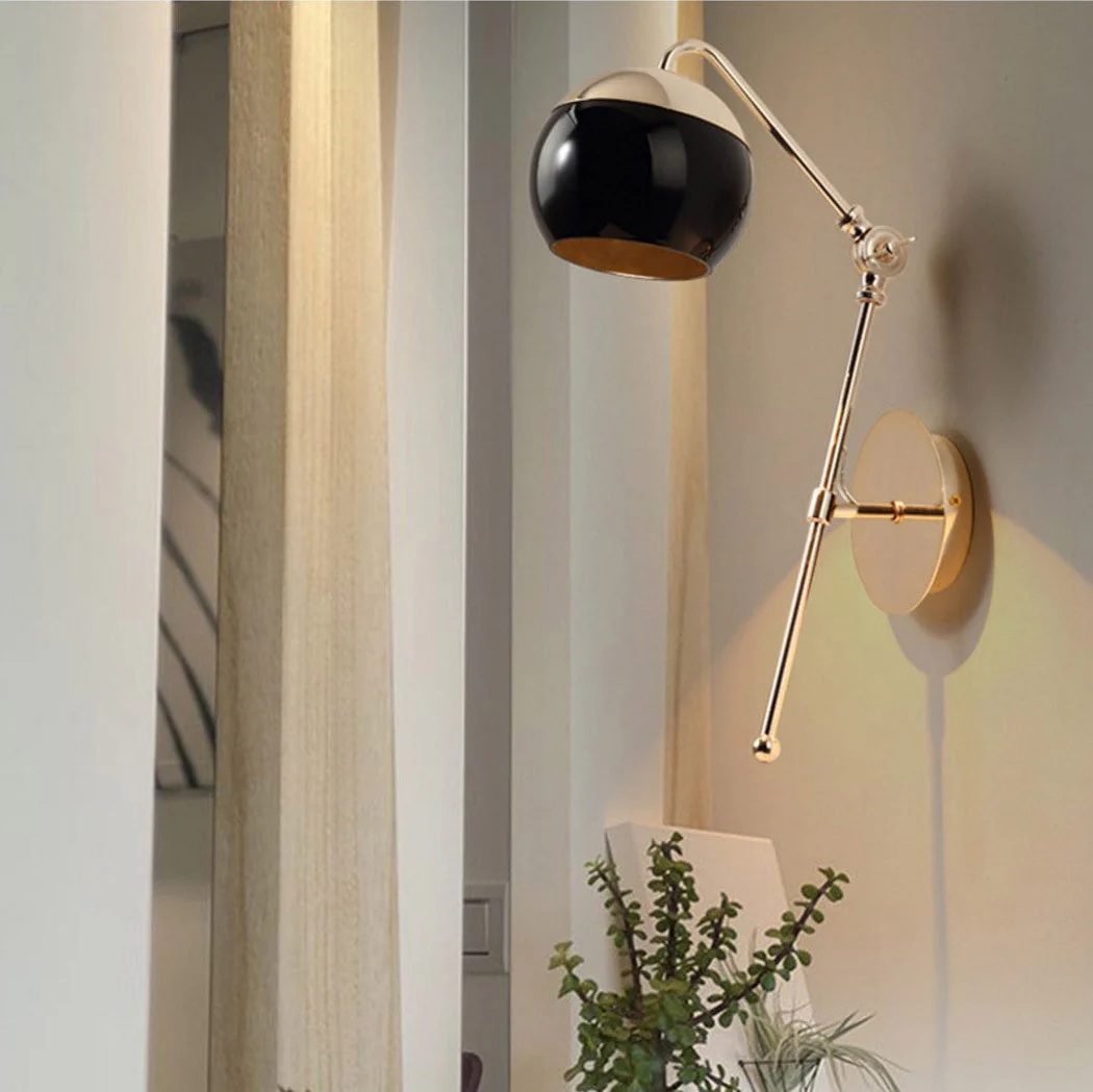 Effortlessly chic with an understated elegance, this wall light is reminiscent of the art deco glamour. Adjust the angle to direct the light to your liking. Two tone elegance in black and gold, this lamp works great for creating a warm, inviting atmosphere in restaurants, cafes, hotels or simply as a bedside lamp.