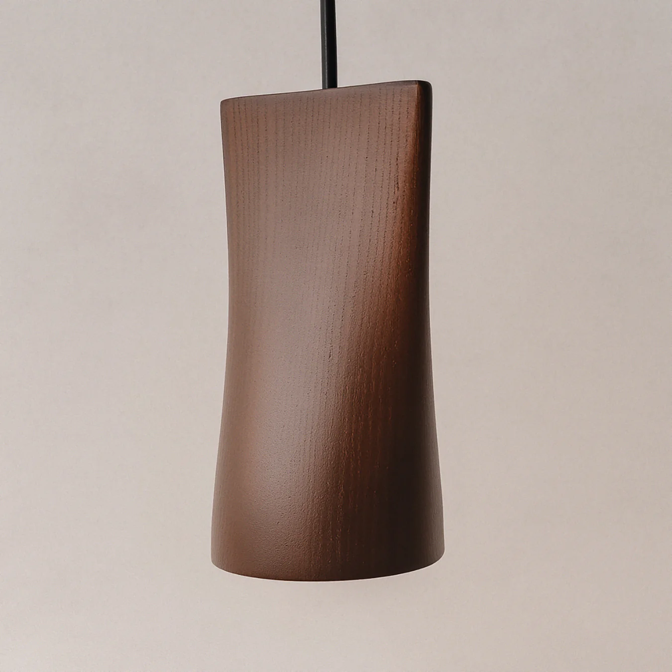 The Walnut Pendant Light is a handcrafted lighting piece made from natural solid wood, available in three elegant finishes: deep black, rich dark walnut, and soft light ash. Each shade is individually shaped by hand, highlighting the organic grain and unique texture of the wood. With a clean, minimalist silhouette inspired by Scandinavian design and a touch of wabi-sabi character, this pendant offers timeless warmth and simplicity. Use it on its own as a bedside or reading light, or group several together to form a statement chandelier—perfect for kitchen islands, stairwells, living rooms, and hallways.